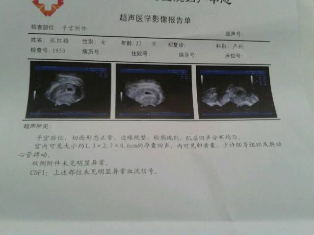 这是怀孕5周(7月23号)的时候检查结果 医生说12周后(9月13号)再去检查 我现在8周了,有必