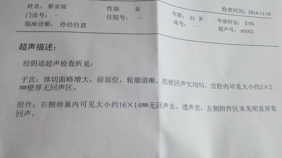 您好,根据您上传的B超检查结果显示,子宫内出现2*2mm的无回声的症状,应该考虑是属于怀孕引起的症状的可能,可以考虑进行血HCG检查,应该是可以明确诊断是否怀孕的,应该保持良好的心态,保持情绪稳定,注意休息,注意生理卫生