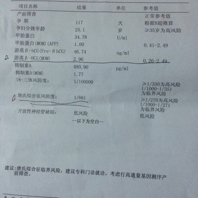 唐氏结果有风险我该怎么办?求助! 唐氏结果有风险我该怎么办?求助! 点击展开 182*****077_DSqQ 2015-07-14 19:22 为您推荐: 其他回答 可以做无创的哦 这个是会很好的呢 你不用担心的啊 ĵ 2015-08-03 10:32 是低风险。 天意难违~~ 2015-07-15 09:45 不是的。高风险不是这样的。你可以拿到其他医院去问问。他们是想你做无创。几千块钱 天意难违~~ 2015-07-15 01:44 再仔细查查 Je 2015-07-14 19:46 听医生的!! 让我依赖你。_Gr9S 2015-07-14 19:36 加载更多 相关问题 唐氏筛查高风险我该怎么办? 唐氏筛查,结果中风险 我该怎么办啊! 帮我看下,我该怎么办,(唐氏筛查结果高风险)