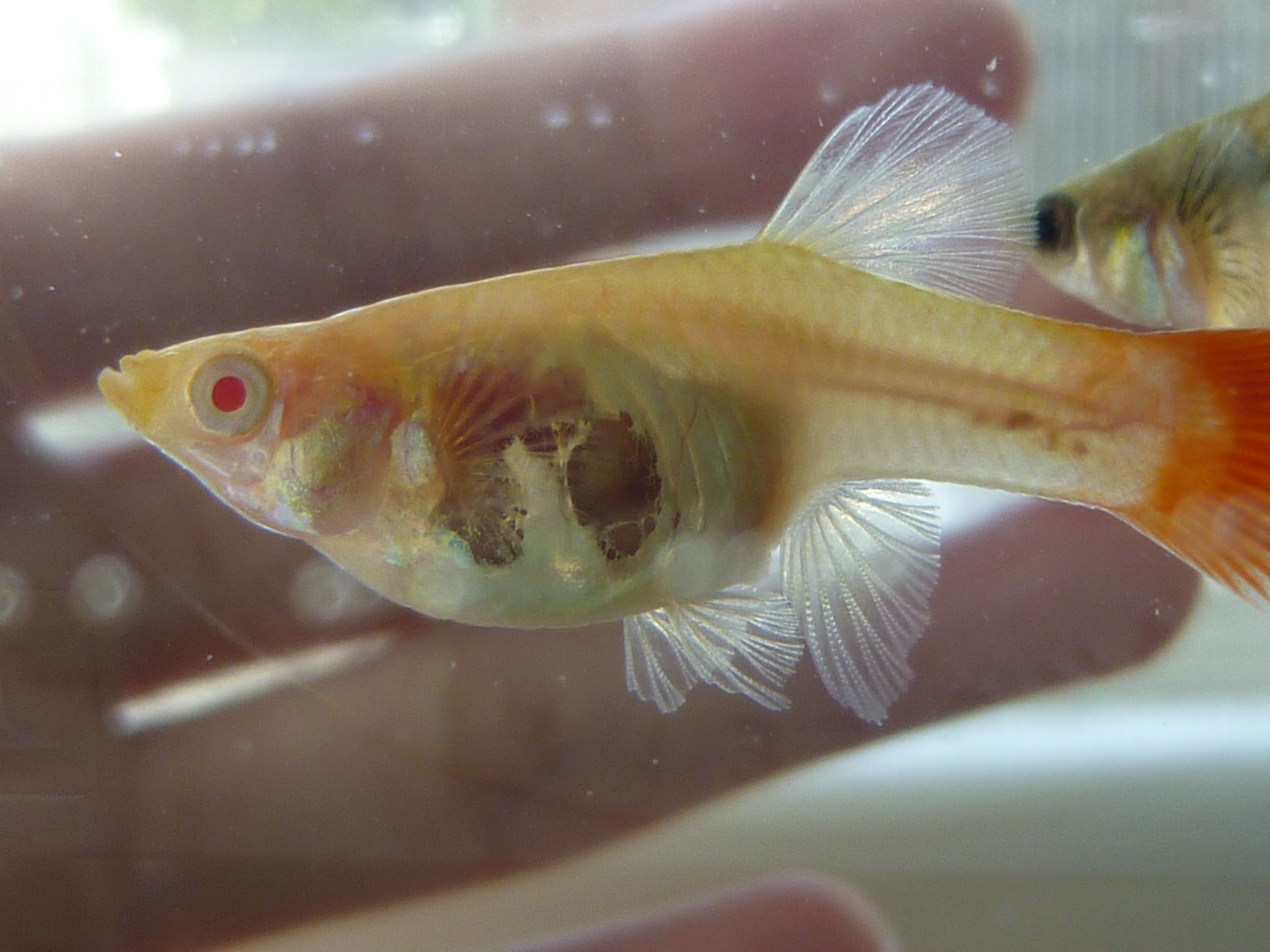 可以去鱼市买点海盐,放缸里(适量)提高温度,,应该是内寄,也有可能是掉鳞导致的.尾巴都烂了,,貌似你缸里没打氧?