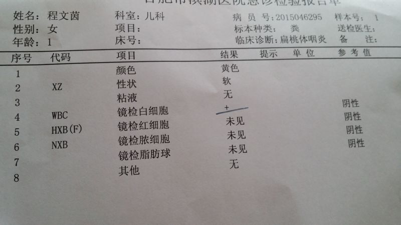 大便镜检白细胞结果有一个加号,医生给开了头孢克洛干混悬剂,才刚出22天的宝宝吃这个抗生素没有问题吗 ? 点击展开 匿名用户 2015-03-20 10:36 为您推荐: 其他回答 您好,您说的情况及大便镜检说明有炎症,治疗上要口服消炎药,在医生的指导下用药。 cn#BfafkVLVQp 2015-03-20 13:36 相关问题 宝宝四个半月病毒性感冒,医院给开头孢克洛干混悬剂,这个不是抗生素吗,听说吃过这个药以后再感冒吃别的 宝宝三个月了纯母乳喂养,一天拉五六次,便便稀水状,绿色酸臭味,大便常规白细胞一个加号,医生让吃妈咪 我家宝宝查了大便白细胞两个++医生让给喂点庆大霉素颗粒可是每一次喂她都干呕让后就吐掉了现在每天早上