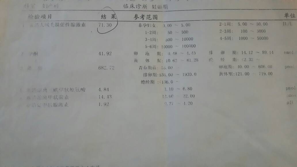 这是4月8日的检验报告单,4月10日的报告单上孕酮是39.4,绒毛膜促性腺激素是231.4