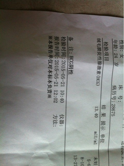 月经推迟10天,验孕棒显示阴性,今天去医院查Hcg,13.40,阴性,医生说未怀孕!开了安宫黄体酮