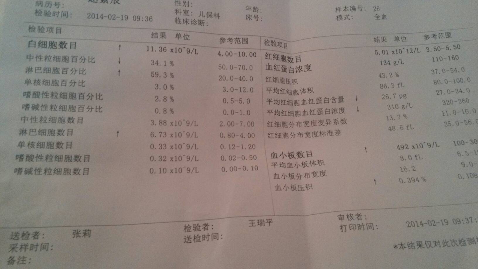 宝宝一岁半,咳嗽,流鼻子,声音嘶哑,不发烧病毒细菌双感染血相高白细胞数目11.36中性粒细胞百分比