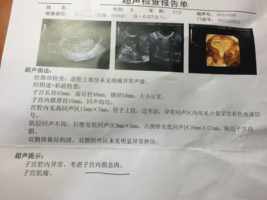 跑步之后阴道留了点血,我就去医院做了个检查、B超单写着考虑为子宫肌瘤子宫内膜息肉!我很害怕!想问问