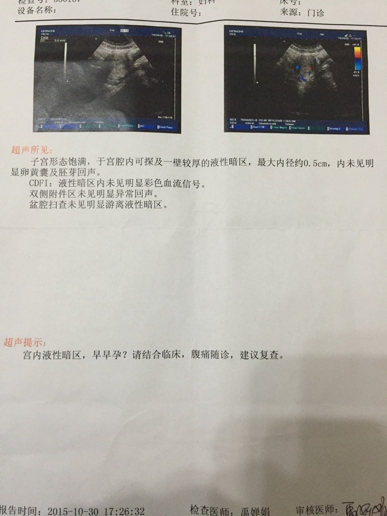 怀孕46天就流血了,验血结果孕酮跟HCG低,图片是我流血前一天照的B超,我这是生化妊娠吗?到底有没 怀孕46天就流血了,验血结果孕酮跟HCG低,图片是我流血前一天照的B超,我这是生化妊娠吗?到底有没有孕囊?医院的医生都在吓唬人,要我清宫我不愿意,流血第三天医生开的药进行药流!(第一天跟第二天流血姨妈感很重)我现在还有一点点流血,什么时候可以再去照B超检查有没有残留? 点击展开 Angela🌟 2015-11-05 21:10 为您推荐: 其他回答 问问医生吧 芳圈圈 2015-11-05 22:42 这个彩超做的不能完全确定就是孕囊 cn#aLVQkBQffG 2015-11-05 21:16 你好,你的这个彩超显示确实还有点东西, cn#aLVQkBQffG 2015-11-05 21:12 相关问题 怀孕45天阴道多次流血,验血孕酮8 64 HCG是3706 什么问题 还能怀上吗? 10月9号末次月事来的,11月12号测出有孕,11月13号去验血,HCG3473,孕酮43 3 1 怀孕6周下面有流血肚子一阵一阵痛去验血孕酮3 08ng/mI (HCG)3833 00mIU/mL 保胎可能大吗?