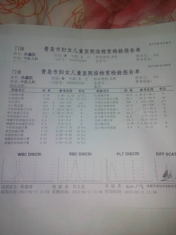 请问我的宝宝三个半月了从昨天晚上开始发烧,也没有感冒的症状是不是可能是婴儿急疹啊这是化验单