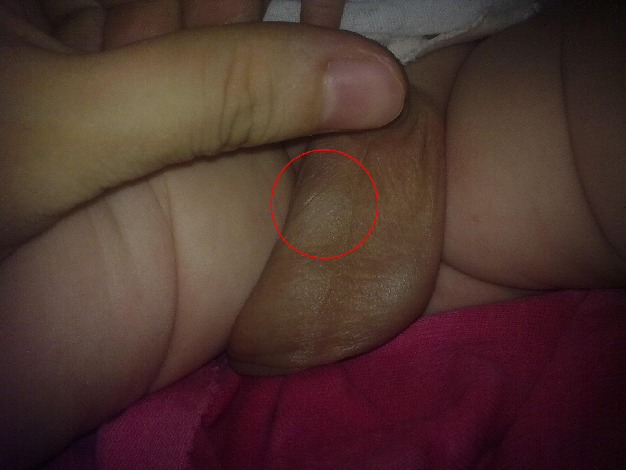 新生儿睾丸上有个鼓包,不硬,也不知道宝宝痛不痛,怎么回事呀?