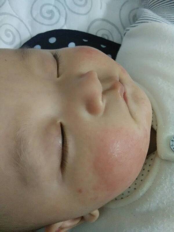 宝宝有点湿疹了吧!用点肤宝宝擦上就会好的。。