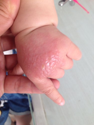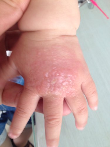 我宝宝的手像是被什么咬了,手背先肿成一块,之后我们用了些药,现在肿是消了一点,但肿的地方变成了水泡 。 宝宝为10个月大。 点击展开 匿名用户 2013-07-26 18:26 为您推荐: 其他回答 你好,这是有毒的虫子咬的,可以给孩子用点儿蛇药片口服和外敷,且有解毒水肿的作用。 不倒翁52 2013-07-26 18:40 相关问题 我家宝宝的左手,长了红红的像水泡一样的,手肿肿的,请问是怎么回事呢? 宝宝手上长小水泡,看了2次医生,擦药膏吃抗敏消炎药都好不了,反反复复的 他经常抓,手背和指间都红红 小宝宝手上起了透明水泡般的东西,呈连片状,细看其中似有白尖,指缝和手背占多数,请问是什么问题?如何