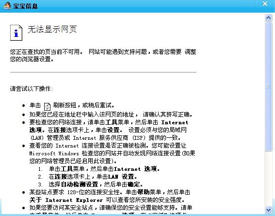 QQ游戏宝宝信息怎么不显示了? 点击展开 匿名用户 2012-11-15 20:35 满意回答 远程服务器出错了 或者你的网络出错了,看你还能提问,可以排除网络问题 直接从游戏大厅进入宝宝叹剑貌乐园试试看 希望能破竖帮到你,望狼糕采纳 匿名用户 2012-11-15 20:38 宝宝知道提示您:回答为网友贡献,仅供参考。 为您推荐: 其他回答 升级一下吧 匿名用户 2012-11-16 16:38 你的网页出错了 去杀毒软件修复下网页 匿名用户 2012-11-15 21:39 相关问题 qq游戏宝宝信息在哪看 我第1个QQ游戏宝宝过期了,现在带了第2个,怎么还显示过期? QQ游戏宝宝明明还有60天却说过期了,游戏商城里又显示过期是怎么回事?