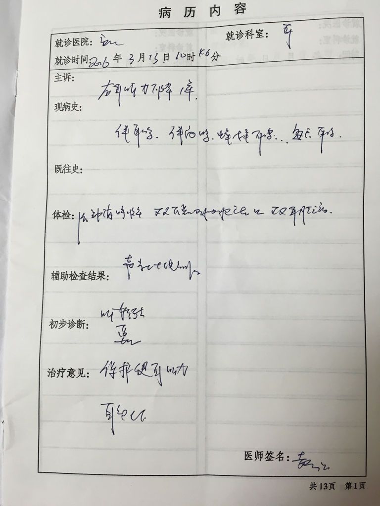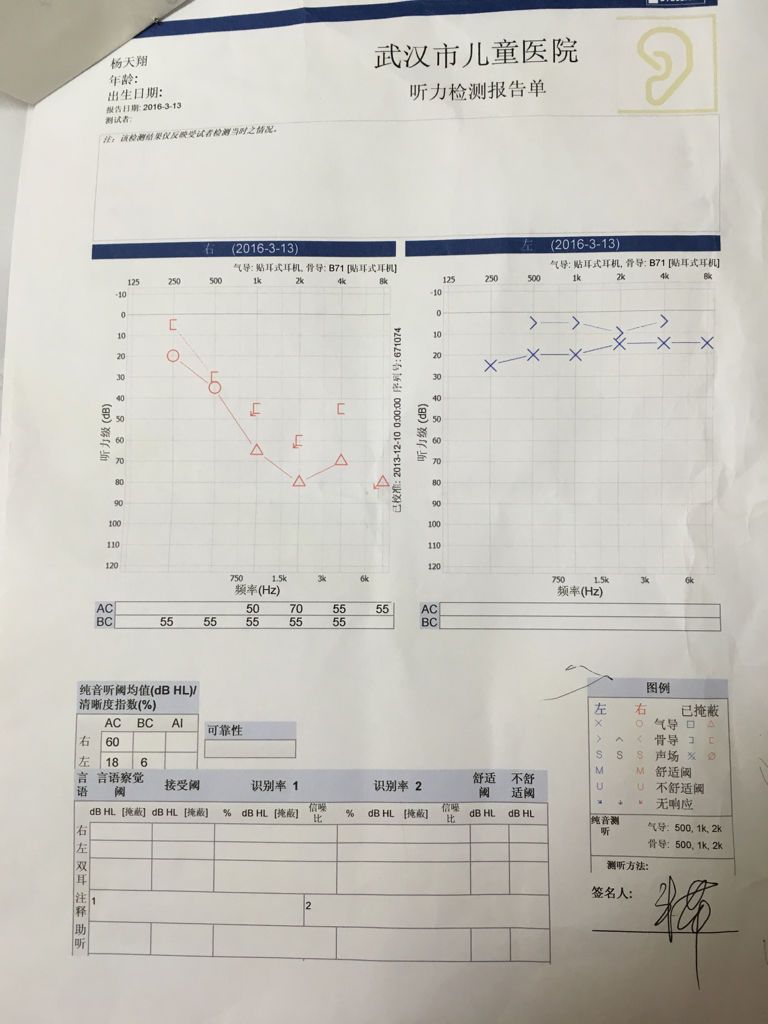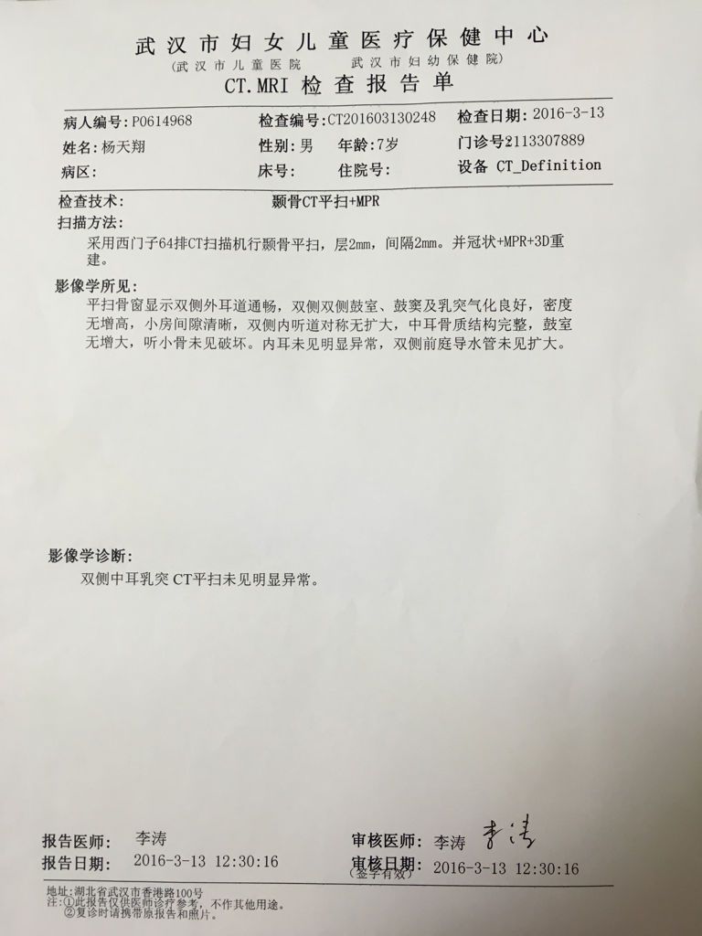孩子八岁,男,右耳常常耳鸣,武汉儿童医院听力检查、CT片,说是神经性耳鸣耳聋,附上图,望好心医生给