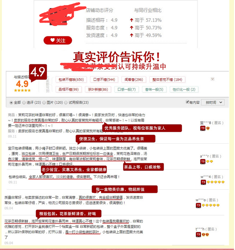 淘宝宝贝详情页 真实好评促销图片是怎么做的? 淘宝宝贝详情页 真实好评促销图片是怎么做的?我记得好像是有个软件可以将好评导出来的,不记得了。哪位大神帮帮忙!下面有图片,不是 点击展开 匿名用户 2020-07-31 08:40 为您推荐: 其他回答 一般是qq截图,或者你打开你的详情页截屏,然后在ps里面修改下的啊。 匿名用户 2020-11-05 18:51 你就是把图用QQ截图下来,然后放PS软件里面设置一下就好。 匿名用户 2020-09-05 21:50 相关问题 淘宝宝贝详细页里面有时间跳动的促销工具是什么 怎么给淘宝宝贝设置一个原价一个促销价 淘宝宝贝促销标签水印哪下载?