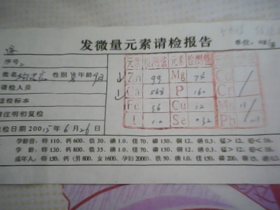 你好!从化验单来看是有缺钙锌的,建议可以服用葡萄糖酸钙锌口服液,如果不想用药的话,建议可以先从食物来补充,比如虾皮、牡蛎、猪肝汤等。