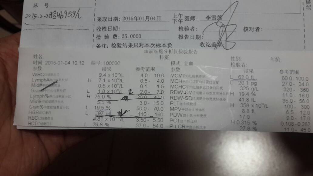 医生!您好!我家宝宝现在7个月!6个月的时候去打疫苗的时候验血!说宝宝贫血!报告如下!现在吃了一盒