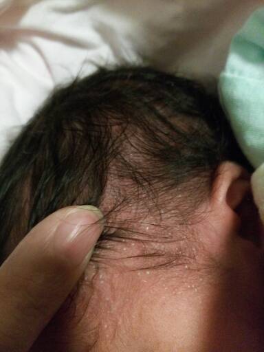宝宝刚出生十天,今天发现宝宝两边太阳穴的位置有这样的小泡,不痒(因为宝宝不哭闹) 请问这是什么病?
