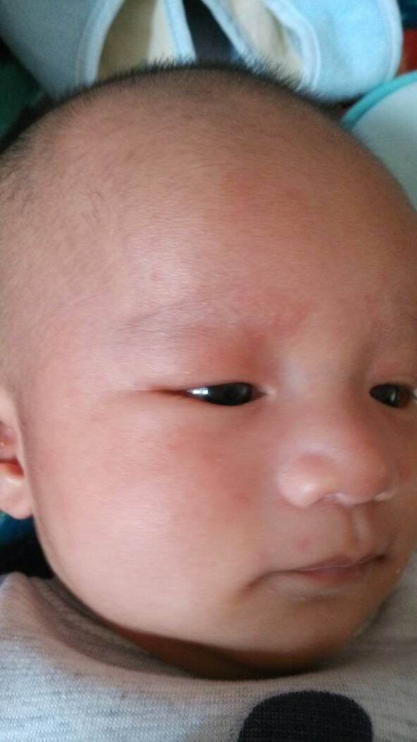 宝宝49天…最近一个星期宝宝脸上出现了红色的点点…非常多…尤其是眉毛上以及额头上非常多…他