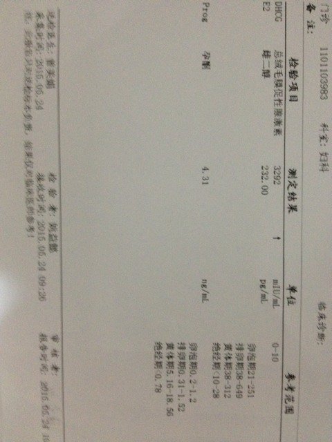 正常吗,帮看下 正常吗,帮看下 点击展开 151*****148_gBjr 2015-05-24 22:03 为您推荐: 其他回答 孕酮太低了。 leedonna 2015-05-24 23:02 亲孕酮低你必须注射黄体酮才能保住 186*****180_13pF 2015-05-24 22:44 你好,孕酮非常低,会流产的,根据检查的结果,现在可以判断胎儿发育可能不正常,也可能属于宫外孕的,建议需要定期进行复查判断,平时需要注意休息。 cn#BBVGkaafBB 2015-05-24 22:36 不正常医生会告诉你的 宝宝妈咪🚼 2015-05-24 22:23 。。。。。。。 我爱橙子 2015-05-24 22:14 加载更多 相关问题 请帮我看一下16+6的宝宝正常吗? 宝妈们,帮看一下,正常吗? 宝妈们帮我看下,我的正常不?