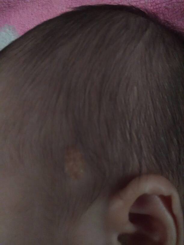 宝宝一出生左耳朵上方有一长1.5cm宽0.5cm的看似比毛孔大些的东东,不疼不痒的,那里很少长头发