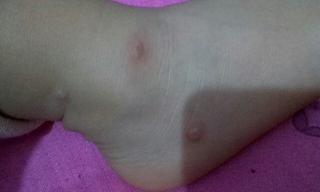 宝宝身上痒,一抓就起红斑,像蚊子叮后一样,抓很了就会在红斑上起疙瘩,中间还有小泡状 宝宝身上痒,一抓就起红斑,像蚊子叮后一样,抓很了就会在红斑上起疙瘩,中间还有小泡状 点击展开 母婴用户664692095 2013-05-01 23:10 为您推荐: 其他回答 去医院检查下,是疱疹还是水痘,如果伴低烧可能是水痘 匿名用户 2013-05-02 08:11 相关问题 3个月宝宝脸上手上长了红斑,后会变成红疙瘩,时消时长,不知道是不是蚊子咬的?? 我家孩子9个多月,最近这几天皮肤表面一抓出现红斑,红斑中间还有个小包,就像是被蚊子叮了一样,十几分钟就消失了,是怎么回事? 坐月子十二天,今天早上起来发现眼皮肿胀还发痒有红斑,胳膊和脖子上,还有腿上都有不同程度的红斑很痒,就像是蚊子叮了,起的那种红疙瘩,这是怎么回事?