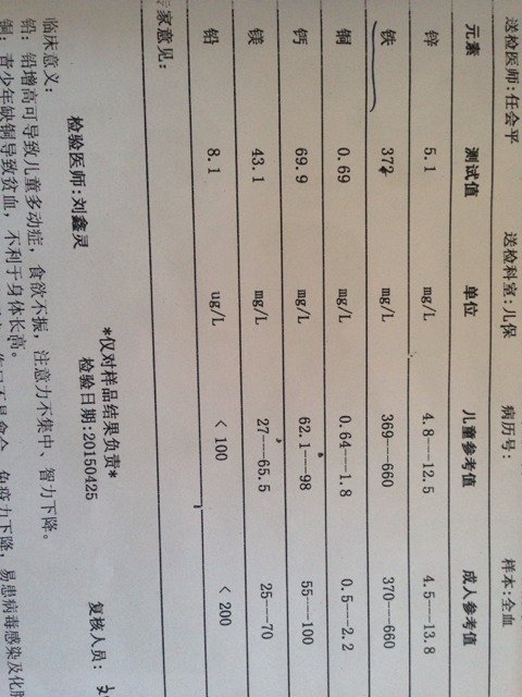 四个月宝宝的微量元素测试表,麻烦医生帮忙看一下 医院医生给开了补铁的和补钙锌的,请问有必要补吗?