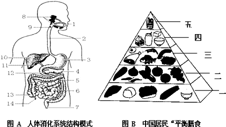 (1)为了做到合理营养,按“平衡膳食宝塔”均衡摄取五类食物,即谷类食峡潜物进食量最多,其后依次是果蔬类、鱼、肉、蛋类、奶豆类、油脂类.由平衡膳食宝塔可知,位于第四层的是谷类食物,该层食物含丰富的蛋白质和钙等,蛋白质在胃内开始初步消化,然后进入小肠,被小肠内的小肠液、胰液彻底分解成氨基酸. (2)食品安全问题,关乎公民的生命和身体健康,国家以相应的法律和各种法规来规范和管理.为了保障食品安全,保障公众身体健康和生命安全,我国于2009年6月1日起实施的《中华人民共崇抓纪和国食品安全法》. (3)每天人摄取最多的食物应是含淀粉类(或说是糖类)较多的食物.;因为淀粉在人体内通过淀粉酶的作用转换成糖类提供人类活动必须的基本能量. (4)人每天摄取的食物最少的应该是含脂肪的食物.尤其是含有大量动物脂肪的食物.即金字塔第五层的食物. (5)青少年每天应比成年人多摄取含蛋白质较多的食物,即宝塔第三、四层的食物. (6)冠心病是冠状动脉粥样硬化引起的,饮食中应减少油用征脂类的摄入,多吃蔬菜、水果等,李伯伯近期患了冠心病,你帮他分析一下,他在饮食中应尽量减少第五层的食物,适当多吃第二层的食物.即少吃第五层的食物,多吃第二层的食物 (7)带有“QS”标志的产品就代表着食品生产企业是经过国家批准的,产品是必须经过强制性检验且合格的故答案为:(1)三;蛋白质;3;6;氨基酸(2)食品安全法(3)含淀粉类(或说是糖类);(4)脂肪;五(5)蛋白质;三、四(6)五;二(7)C