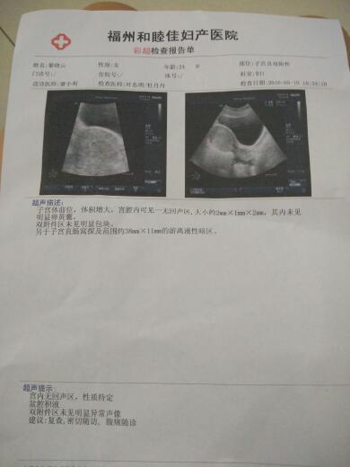 早孕,子宫直肠窝探及范围约38mm×11mm游离液性暗区 点击展开 母婴用户163544542 2016-05-11 10:58 为您推荐: 其他回答 你好,你的检查显示盆腔少量积液,怀孕早期盆腔充血,本身也可能引起,如果没有症状暂时先观察。怀孕早期注意休息,适度补充叶酸。 sunxl2007_2007 2016-05-11 10:59 相关问题 子宫直肠窝见游离液性暗区,范围约8mm会不会怀孕啊? 解脲支原体呈阳性,杂菌、霉菌阴道炎,宫颈充血、轻糜,子宫直肠窝4 6*1 8cm的游离积液以下治疗是否正确? B超显示子宫长径50+29mm横径40mm前后径39mm内膜厚度11mm,卵巢长径27+32mm后径16+23mm,这样算早孕吗?