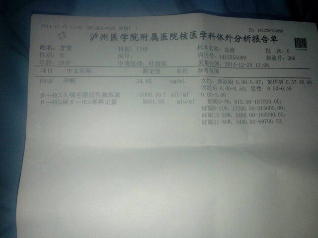 大家帮我看看,我的宝宝有没有问题呀?谢谢大家了 大家帮我看看,我的宝宝有没有问题呀?谢谢大家了, 点击展开 加油,宝宝 2014-12-25 18:09 为您推荐: 其他回答 孕酮好像低 只要你健康 2014-12-26 17:19 我看不懂 帮不到你 安 分守己ヽ 2014-12-26 10:36 首先孕酮和HCG的分泌水平比较低的。建议需要确定HCG在四十八小时内的增长速度,判断是否存在宫外孕的可能。 cn#BBVGkaafBB 2014-12-25 23:55 问问医生呀 快乐宝贝,,,, 2014-12-25 21:45 哦哦 那应该没事 有事的话医生会告诉你爷爷的 150*****687_IIms 2014-12-25 21:21 加载更多 相关问题 能帮我看看这个有什么问题吗?谢谢! 有没有医生帮我看看这个有没有什么问题啊? 麻烦帮我看看 有没有问题 谢谢