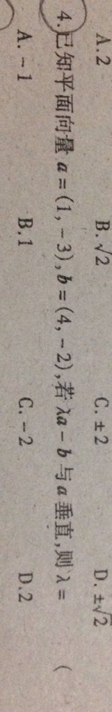 求这两道题的解题过程,本宝宝做不出来了 点击展开 匿名用户 2016-03-11 23:07 满意回答 第四题点乘等于零相互垂直,就一个未知量可以求出来 匿名用户 2016-03-11 23:09 宝宝知道提示您:回答为网友贡献,仅供参考。 为您推荐: 其他回答 第九题考的上对称轴x=1以及导数大于0为增,画图去理解就行了, 匿名用户 2016-03-12 00:26 ,9应该选c9应该选c9应该选c9应该选c 匿名用户 2016-03-12 00:18 相关问题 这道题的解题过程是?成年女性排卵的前1天 这道题的解题过程是?给小孩接种牛痘可以预 这道题的解题过程是?有的人受好奇心的驱使