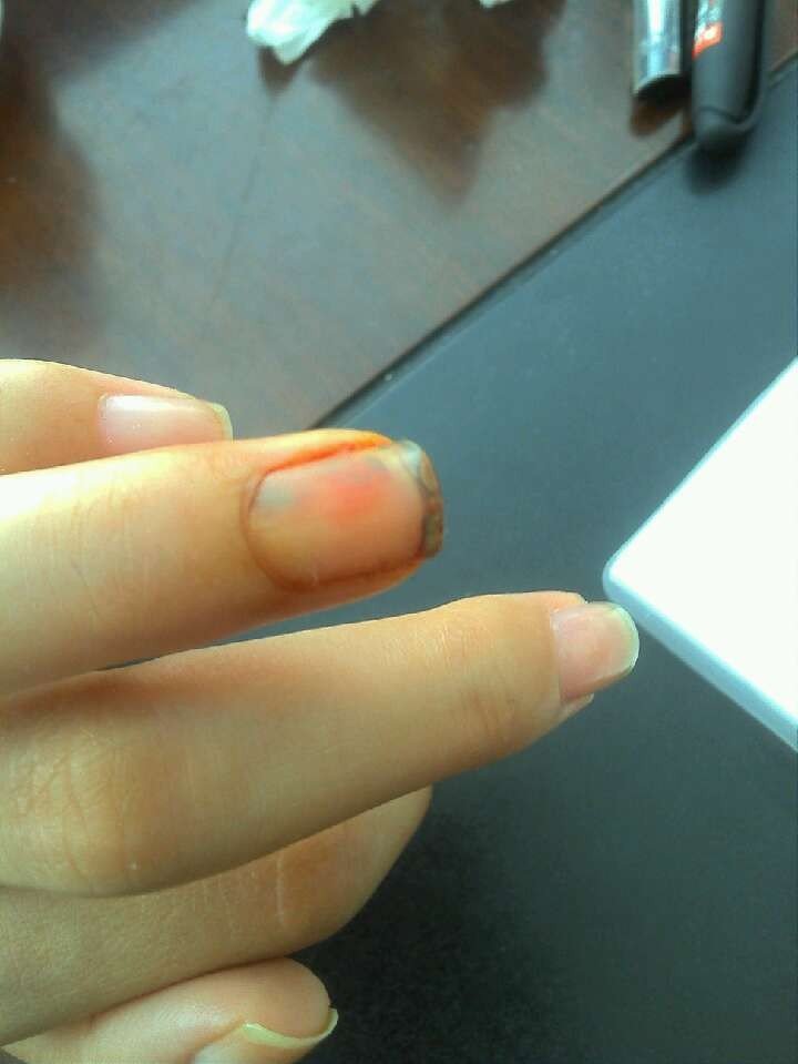 手指甲被门挤了,有点淤血,一直出血疼,帮忙看看