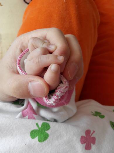 宝宝39天,今天刚发现她大拇指指甲这个样子了,正常吗?和新生儿肺炎的指甲发绀一样吗!