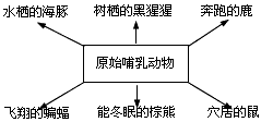 图表示几类哺乳动物的起源情况,对此图的分析正确的是 [ ] A.原始哺乳动物为适应不同的环境而进化为现存各类哺乳动物 B.现存各类哺乳动物的出现是自然选择的结果 C.生物通过定向的变异适应变化的环境 D.在现存条件下,原始哺乳动物也可进化为现代哺乳动物