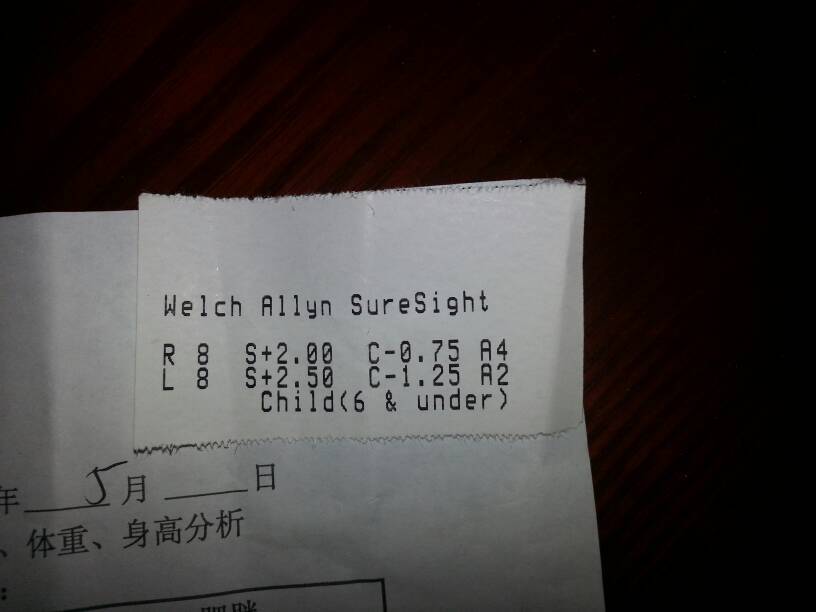 帮我看下这张视力检查结果,五周岁小孩的 点击展开 匿名用户 2014-05-28 22:10 为您推荐: 其他回答 你好,下面看不清楚的,一般都没有问题的,如果有异常的医生会告知的,不需要担心的。 可靠的悠闲80 2014-05-29 10:29 相关问题 求解1周岁的宝宝的视力检查结果,谢谢!! 整4周岁宝宝眼睛视力检查结果:R:+0 75/-0 5×17;L:+1 0/-0 75×18 儿子(三周岁)视力检查结果 谁帮我看看什么意思 Welch Allyn SureSight R 7 S+1 3 C+0 2 L 8 *S+4 3 C+0