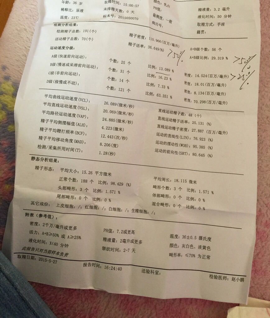 问:各位老师们请帮我看一下前段时间刚去查的精子质量,这样的结果能怀孕吗?如果坏上孩子能健康吗?会不