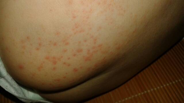 宝宝长红点,晚上比较多,早上起来会好点,到晚上就会有很多,屁股和手肘最多,好了又长,宝宝也不抓似乎