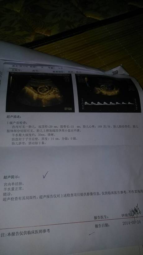 你的检查的结果宝宝的发育还是比较好,但是您的宝宝的胎心是比较快,一般正常的时候就是在160以下,您的宝宝的情况是在169,速度是快了,因此您就是要注意是有缺氧的可能,要到医院吸氧治疗,不要拖延,心率不能很快