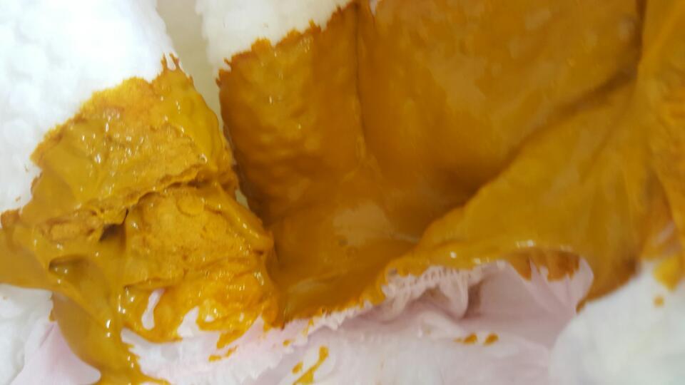 3个多月宝宝便秘!用肥皂给她捅了一下!拉出来好多!现在不捅就不拉!精神好,吃的也不错!臭臭如图!是