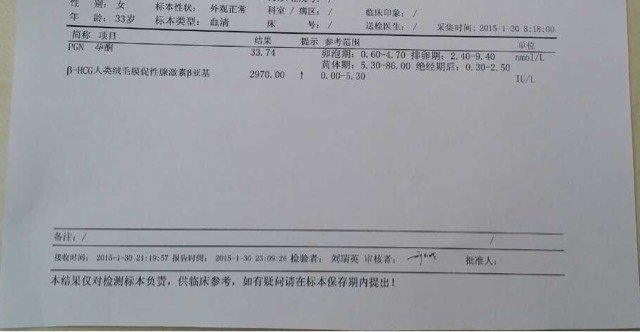 图为42天时抽血化验的单子,医生说孕酮低要吃药或打针 本人已育一子今年7岁,10年人工流产一次,1