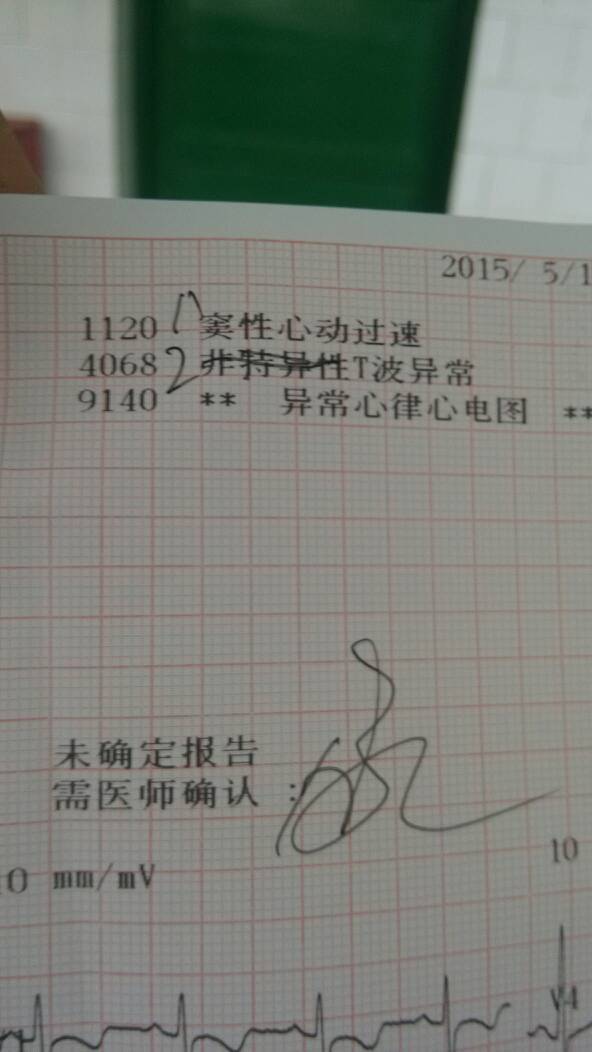 窦性心动过速可以见于 1、吸烟、喝茶、运动及激动时, 2、也可见于发热、贫血、甲亢、心肌缺血、心肌炎及心衰患者。而T波正常值振幅大于等于同导联R波的十分之一,T波异常无肺就是低平、倒置或者高尖主要见于心肌缺血(冠心病、心绞痛等)。