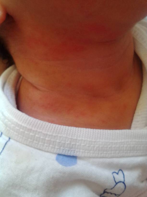 从图片看,是颈部的痱子。 痱子是在高温闷热的夏天,由于汗液排泄不通畅潴留于皮内引起汗腺周围炎症,多见于胖宝宝和衣服穿得太多的宝宝。 痱子一般无需用药物治疗,降温、少穿些衣服就能自愈。如果痱子特别严重,实在需要用药,也只能对症治疗,可用炉甘石洗剂止痒,用抗生素软膏治疗继发的皮肤细菌感染等。