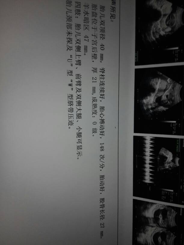 你好,看报告上胎儿的双顶径的大小相当于怀孕17周左右的,胎心羊水量都在正常范围的。但是性别看检查的报告时看不出的。按时检查,祝你生一个健康的宝贝啊。