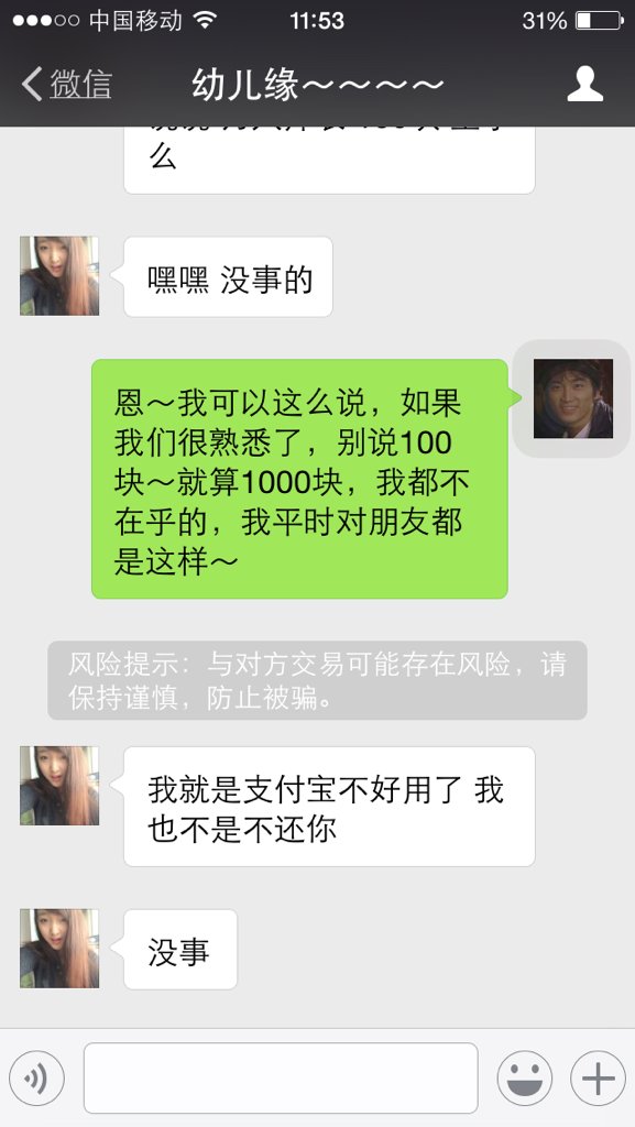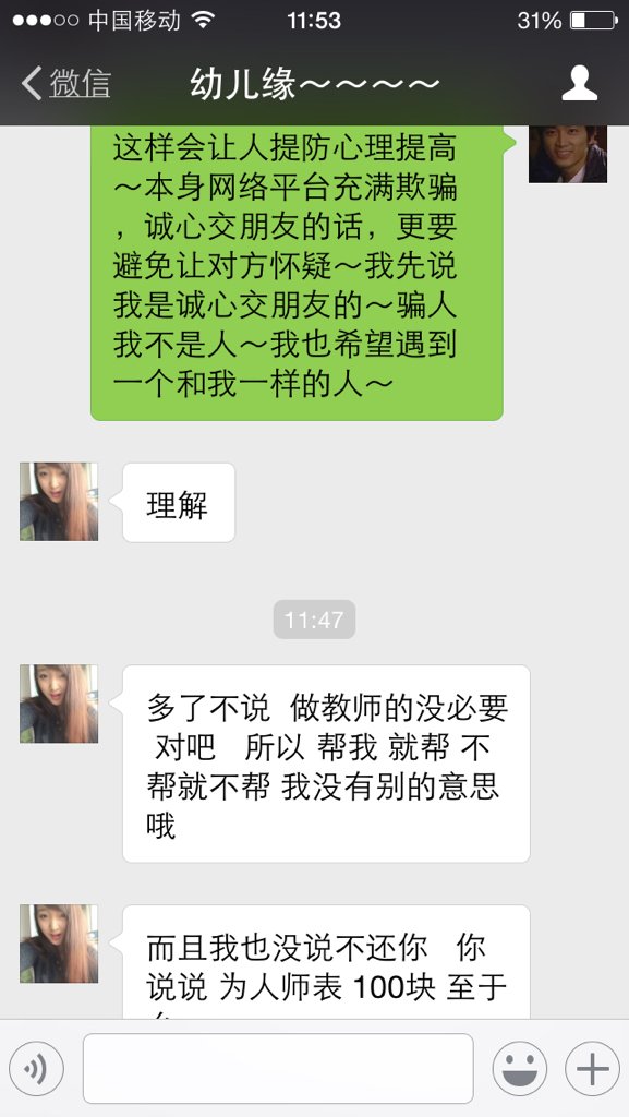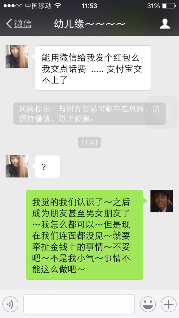 这个女孩是在一个社交网站上认识的~聊的也挺好~聊了几天了~今天突然给我咬我给他充话费~大家加看看是