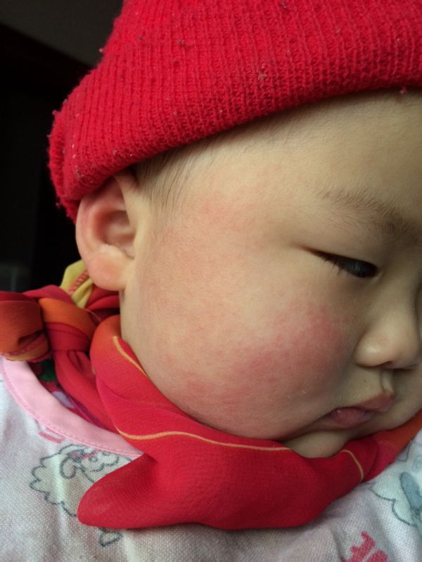 宝宝三天前脸上有一大片红色疹子,和蚊虫叮咬过差不多,而且脸红看起来更明显,摸上去还热热的 今天看看
