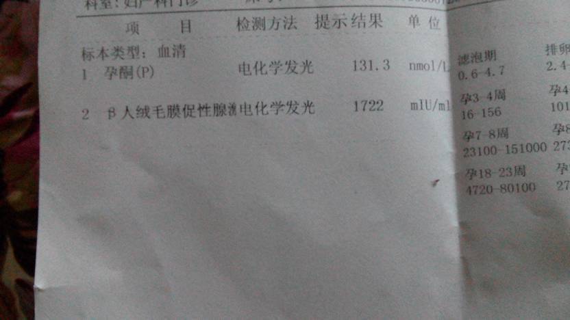 今天去验血了,怀孕了,五周,有谁能帮看看这个化验单能否看出是宫外孕啊 点击展开 雨晴_9Ks1 2015-02-12 20:14 为您推荐: 其他回答 这情况不能确定就是宫外孕的,可考虑做B超检查来确定, 目前多休息,妊娠期关键不要偏食,饮食尽可能广泛多样化,多吃高蛋白优质蛋白食物多吃蔬菜水果。 cn#BVGVGVfVQp 2015-02-12 20:21 相关问题 请帮忙看一下验血化验单,看看这是不是宫外孕,谢谢! 怀孕了先流褐色的血,我怕宫外孕就没管它等验血结婚今天有流黑色的是怎么回事 怀孕八周,没有出血腹痛的现象,只是偶尔恶心,是不是可以排除宫外孕呢?