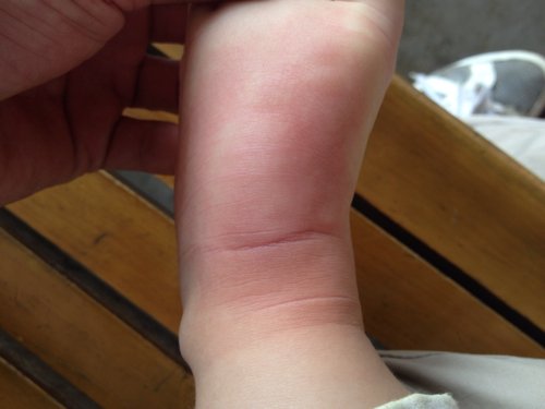 我宝宝这是被什么咬的呀?天哪,刚用红花油擦了下,请教教我紧急处理办法,我在线等