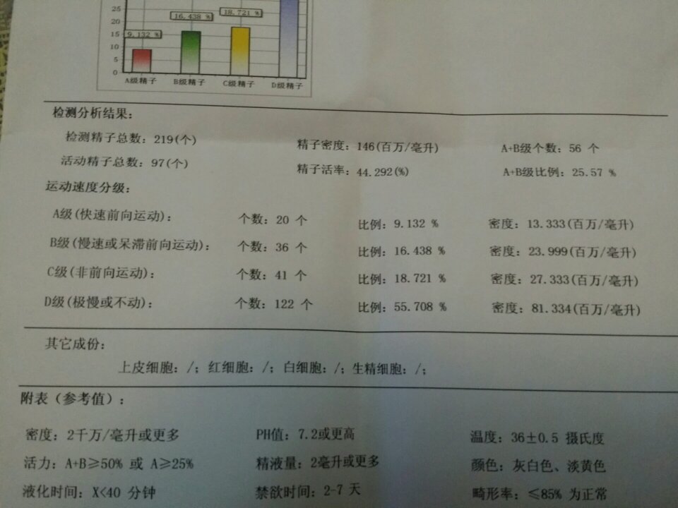 最近准备要孩子,谁明白帮忙看看我这份精子检测报告正常吗? 点击展开 匿名用户 2016-05-11 19:17 满意回答 精子活力低,要注意有没有精索静脉曲张。。 drzhu973 2016-05-11 19:22 宝宝知道提示您:回答为网友贡献,仅供参考。 相关问题 精子检测报告,帮我看下能否怀孕 正常吗?? 最近准备要小孩,去医院做了精子运动轨迹分析,请老师们帮我看看有没有什么问题,怎么治,谢谢啦 每次和老公完事后 老公的精子都会从我下面慢慢流出来 这是什么情况 本准备要孩子的 正常还是不正常