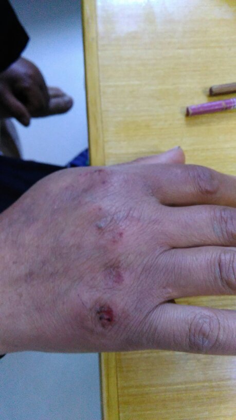 我爸妈和另外一对夫妻打架,对方先出手,我爸造成皮外伤,脸上被抓了很多痕迹,流了一些血,对方一个孕妇