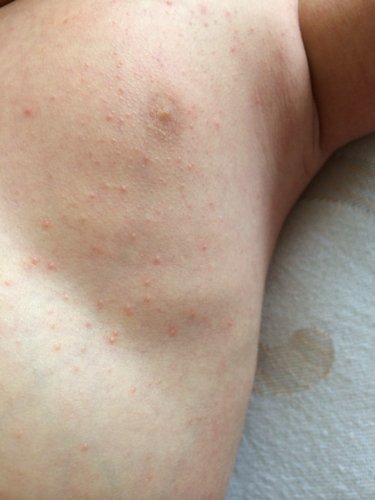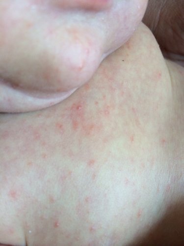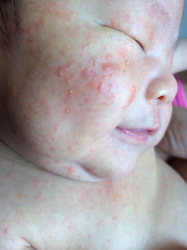 宝宝满月了,身上和脸上起满了小红点和红底白头的小疙瘩 脸上的小疙瘩一直都不消 身上的小红点平常还好