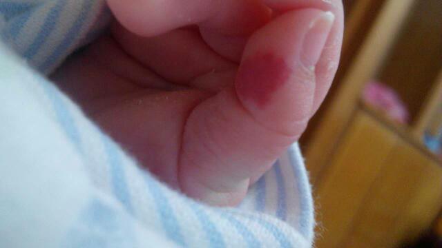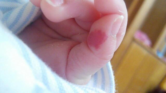 新生儿女孩满月后,去打了防疫针,结果第二天手指上出现了红疹,下体流白色液体,到医院检查,医生说是血