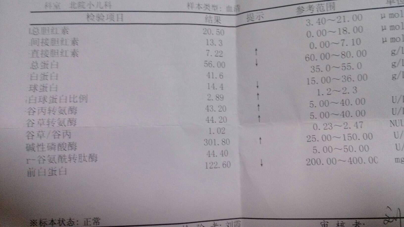 宝宝现在两个半月了,黄疸一直不退,15天的时候抽了一次血,查了肝功能正常,谷草稍高,12月五日又去 宝宝现在两个半月了,黄疸一直不退,15天的时候抽了一次血,查了肝功能正常,谷草稍高,12月五日又去测试的血,肝功能正常,谷草谷丙都有点高,优生四项cmv igm是阳性,皮测黄疸指数平均7.9,请问以上数值说明肝脏有损伤吗?如何判断,cmv igm是阳性是否需要治疗。附上前后两次的化验单 点击展开 匿名用户 2013-12-08 07:31 为您推荐: 其他回答 病情分析: 你好,其正常值应该不超过12的。 指导意见: 婴儿精神好,体重也增加,就是有点黄疸也不必担心,照常喂奶就是了。 独水凡_xjeq 2013-12-08 10:08 相关问题 孩子满月时黄疸高住院治疗,4个月黄疸正常 5个月肝功能检查,谷草转氨酶63(正常8一40),总蛋 宝宝出生23天了!黄疸还是没退干净,之前吃过茵栀黄五天,稍有好转!请问现在怎么办啊? 宝宝2个月黄疸还是6点到8点左右,查血检查肝功能:谷丙转氨酶102,谷草转氨酶138,碱性磷酸酶4